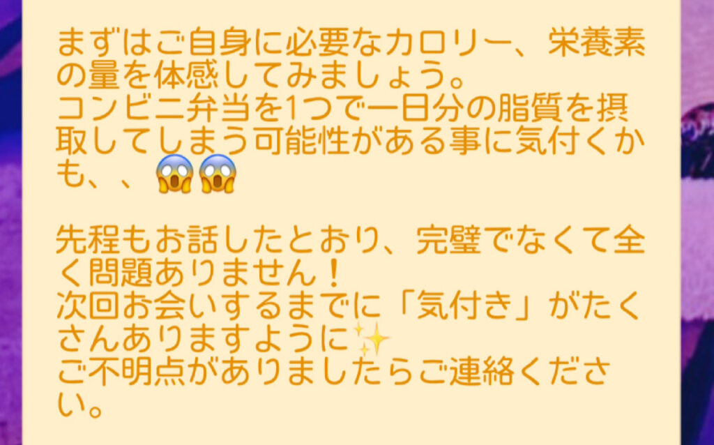 しかし、この様な質問をトレーナーにしてくれるということは、食事や運動を続けていく中でヘルスリテラシーが向上しているということ。