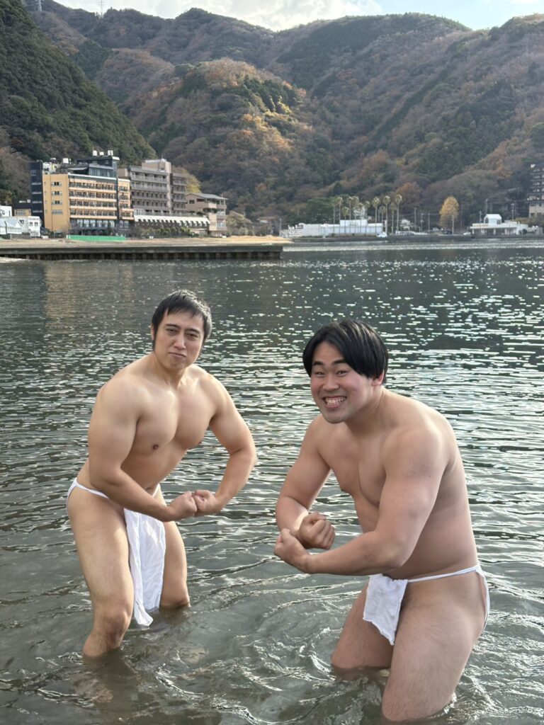 伊豆旅行での一幕(寒中水泳をしました笑)